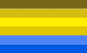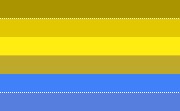 Los colores del arco iris vistos por una persona con deuteranopía, en la que los conos que perciben la componente verde no funcionan. Las longitudes de onda largas (verde, amarillo, naranja, rojo) las ve amarillas y las cortas (azul y violeta) las ve azules.
